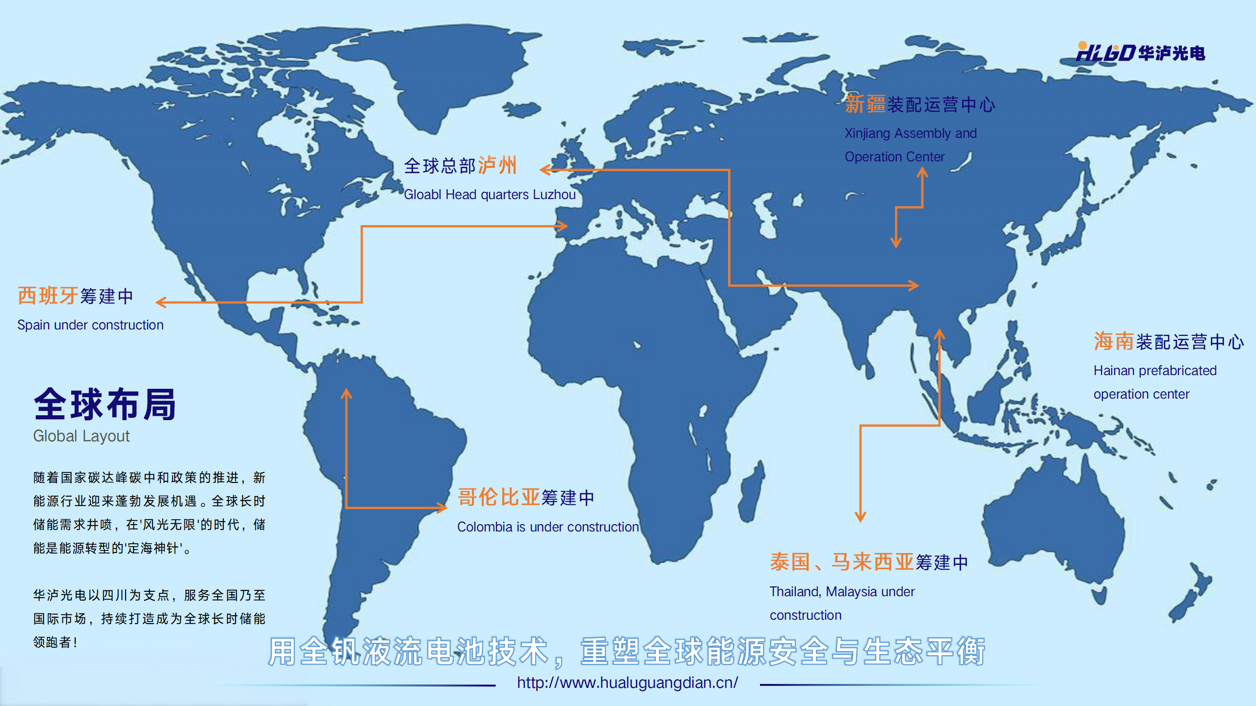 四川华泸光电集团有限公司成立于2018年,总部位于四川省泸州市纳溪区,是国家“双碳”战略践行者与新能源领域领军企业。公司以“光储智造+能源服务”双轮驱动为核心战略,构建覆盖光储EPC、全钒液流储能系统制造、锂电技术研发的全产业链布局,拥有30余项核心专利及国际权威认证(CE/CB/FCC/ROHS等)。