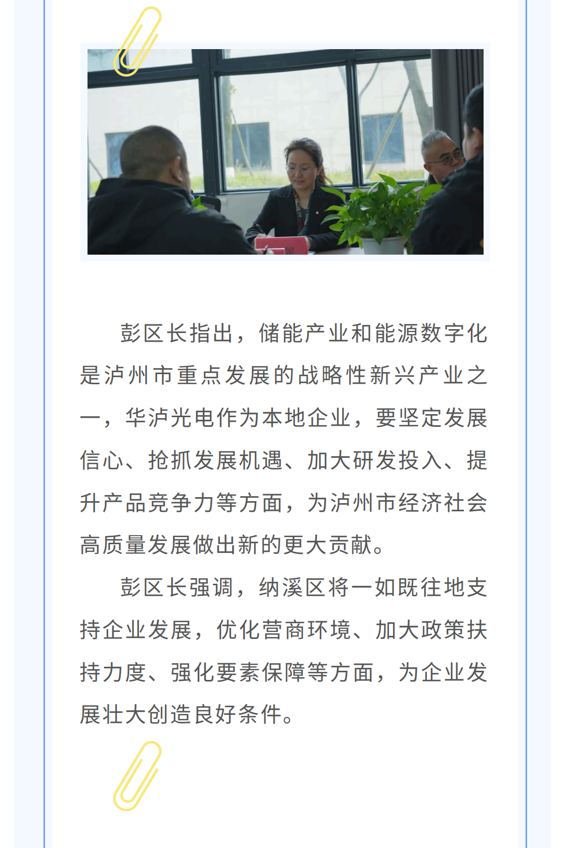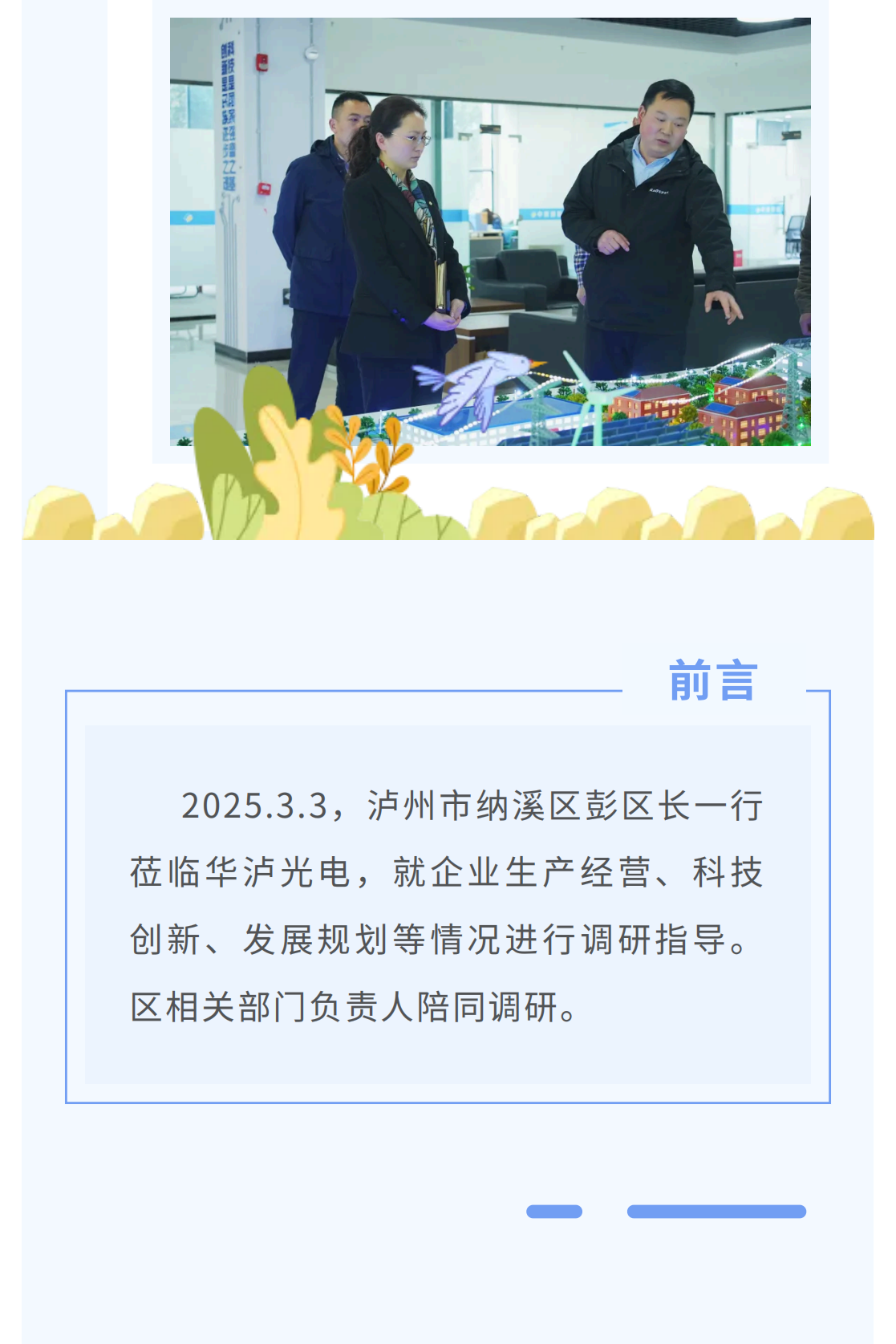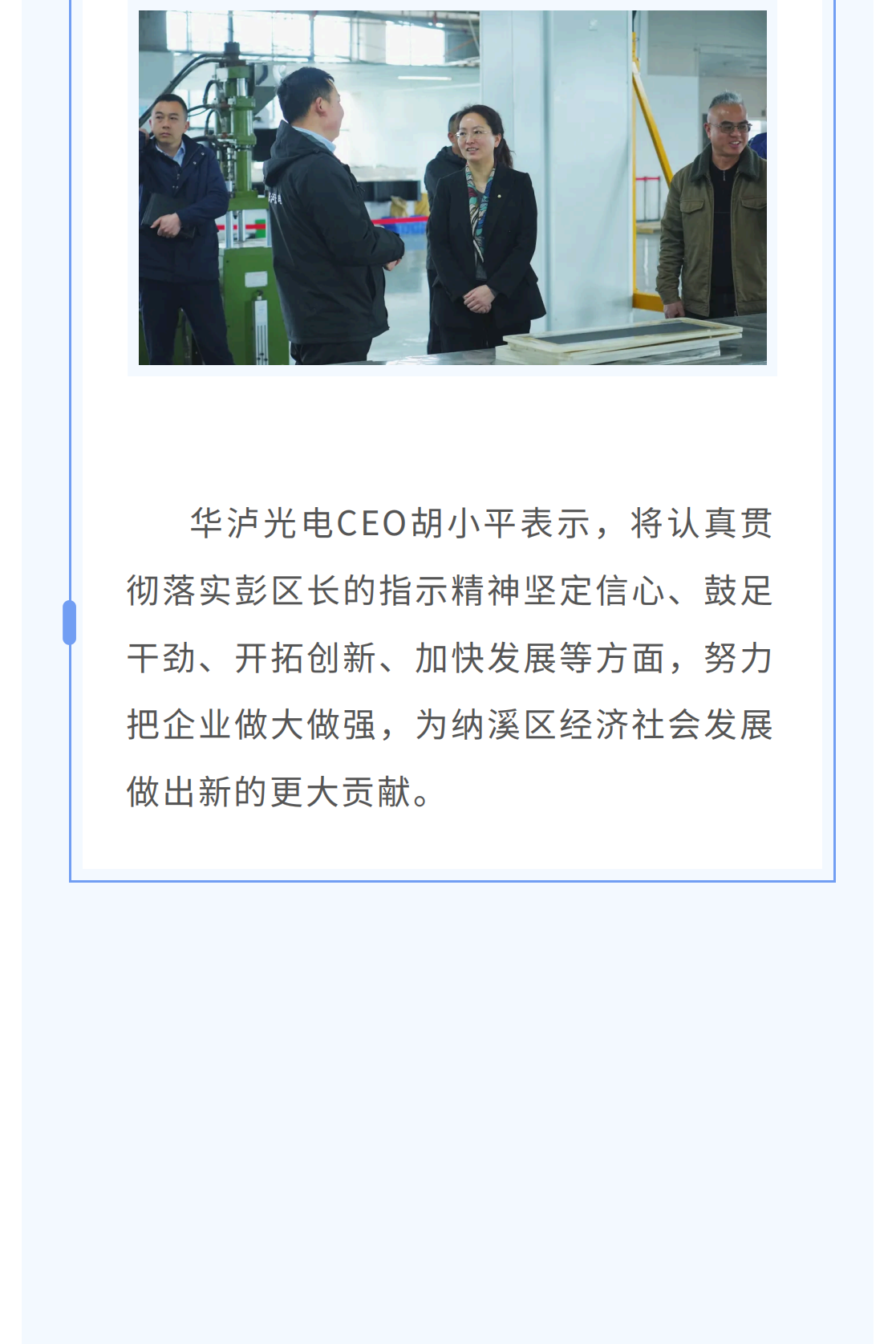 泸州纳溪区彭区长莅临华泸光电调研指导工作