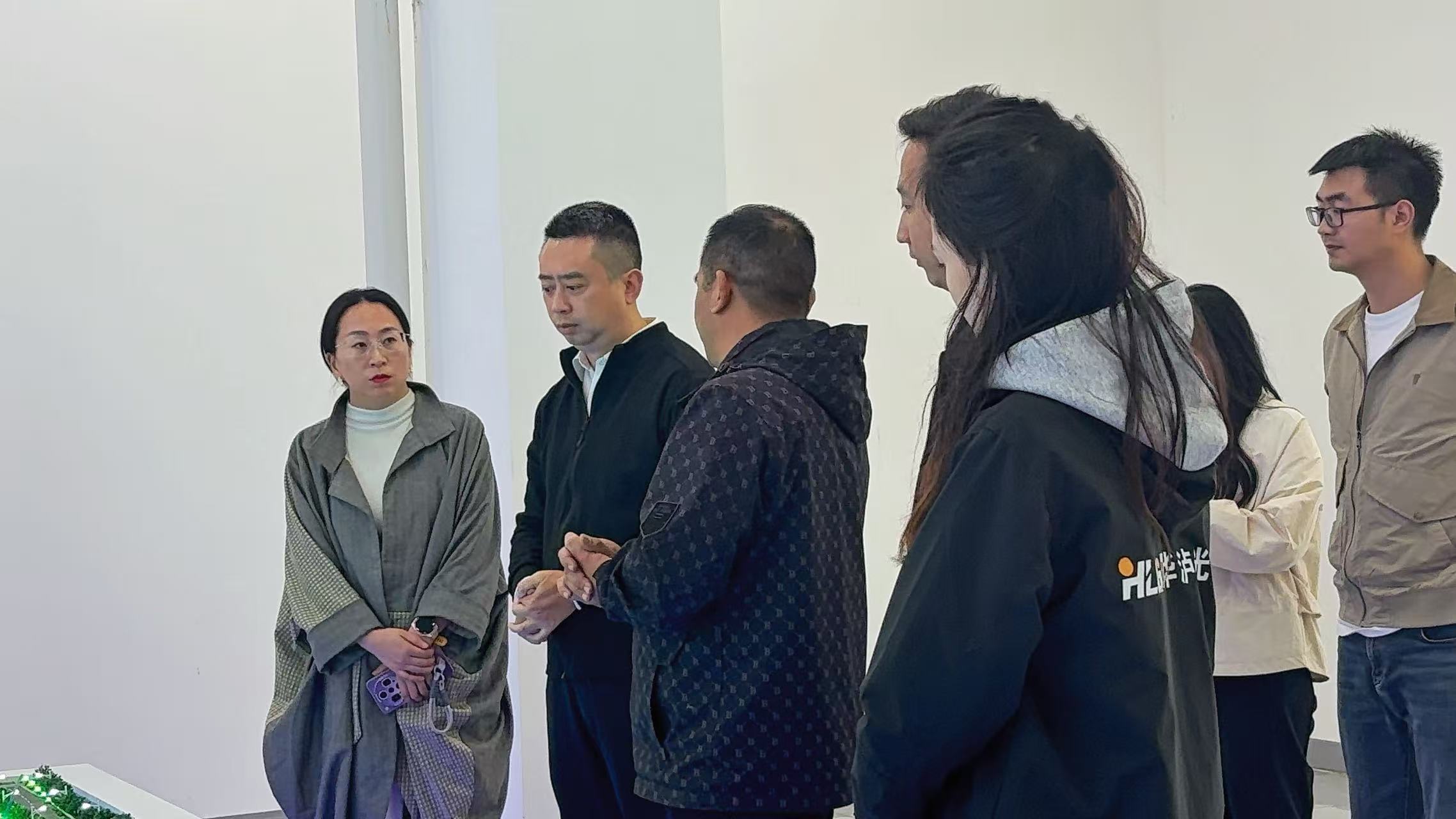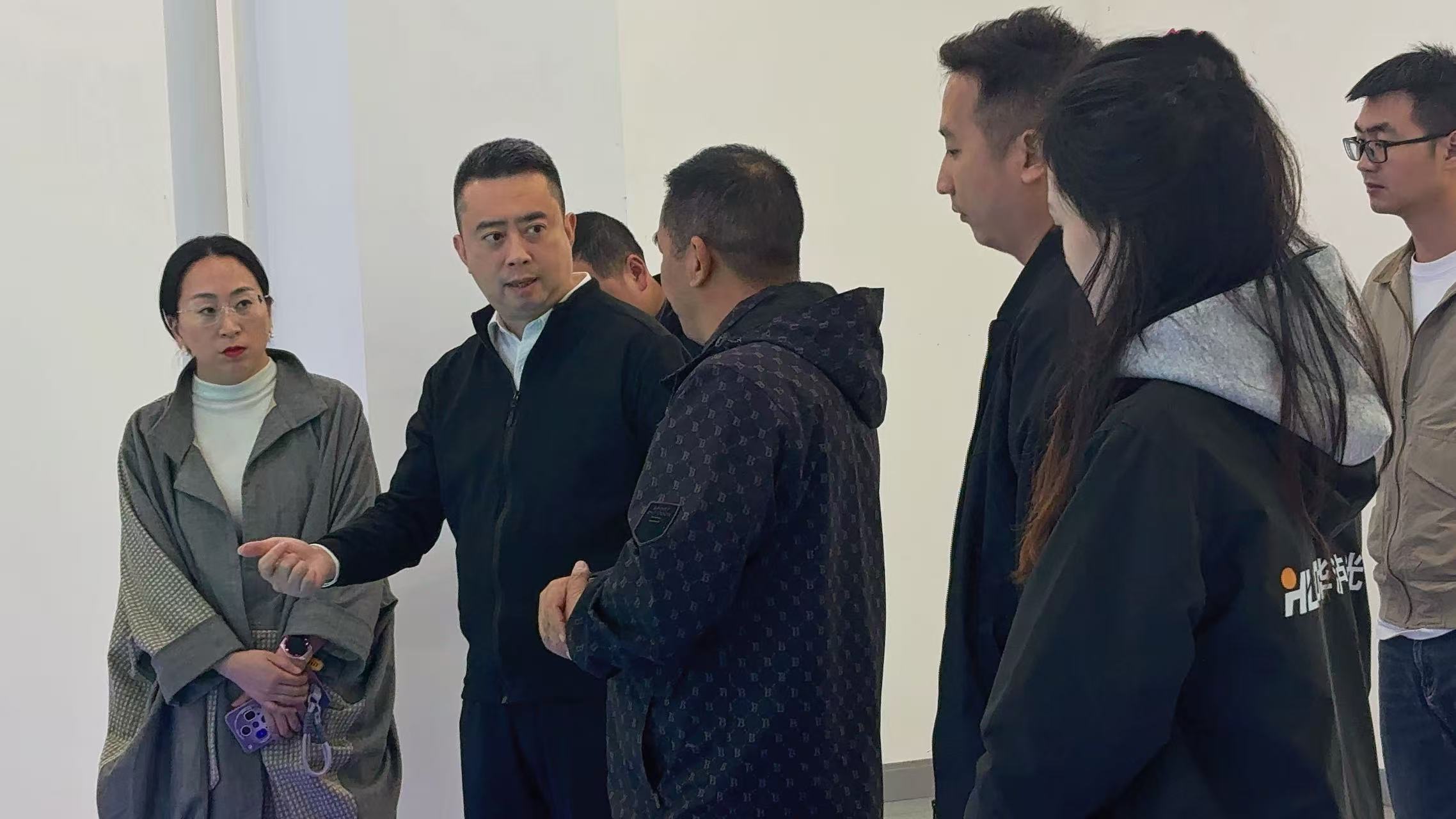 在崭新的厂房内,集团董事长向区长一行详细汇报了华泸光电在全钒液流电池领域的战略规划与技术成果。